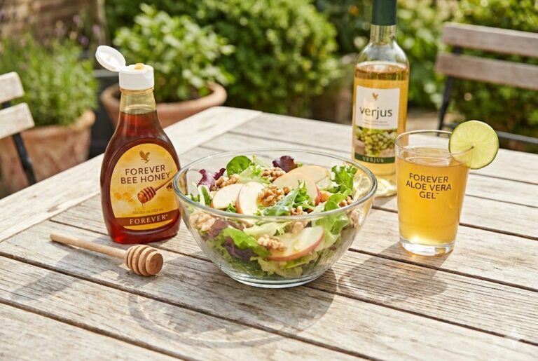 We suggest using Forever Bee Honey™ * to balance the tartness of the verjus. For a holistic wellness boost, pair this light salad with a glass of Forever Aloe Vera Gel™ * to support your digestive tract and overall nutrient absorption.
